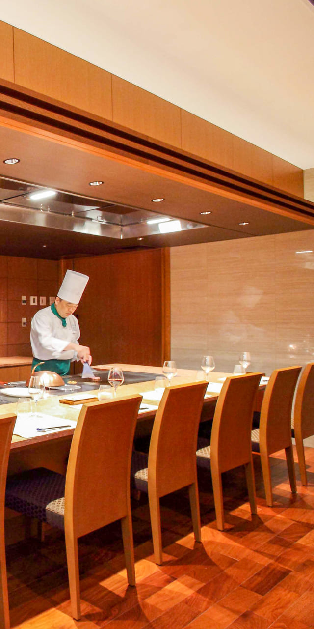 鹿児島・出水の北さつま のむら牛をはじめ、目の前で焼きあげる地元福岡の野菜や魚介類。音と香りの演出とともに素材の持ち味を存分にお楽しみいただけます。シニアソムリエ厳選のワインもご用意してお待ちしております。