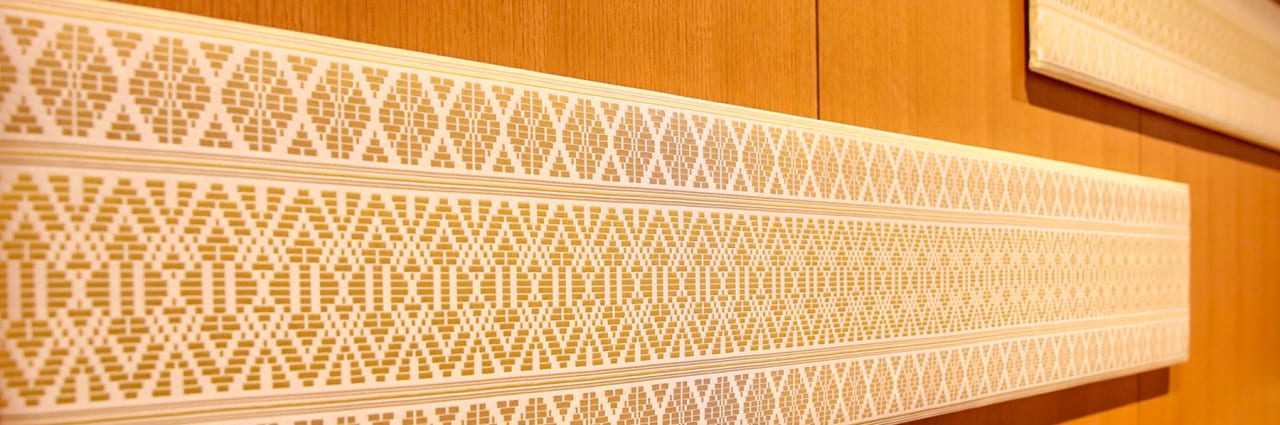 ご縁を大切にし、旅人を護ると伝えられる伝統の柄、その献上博多をロビーに展示しております。