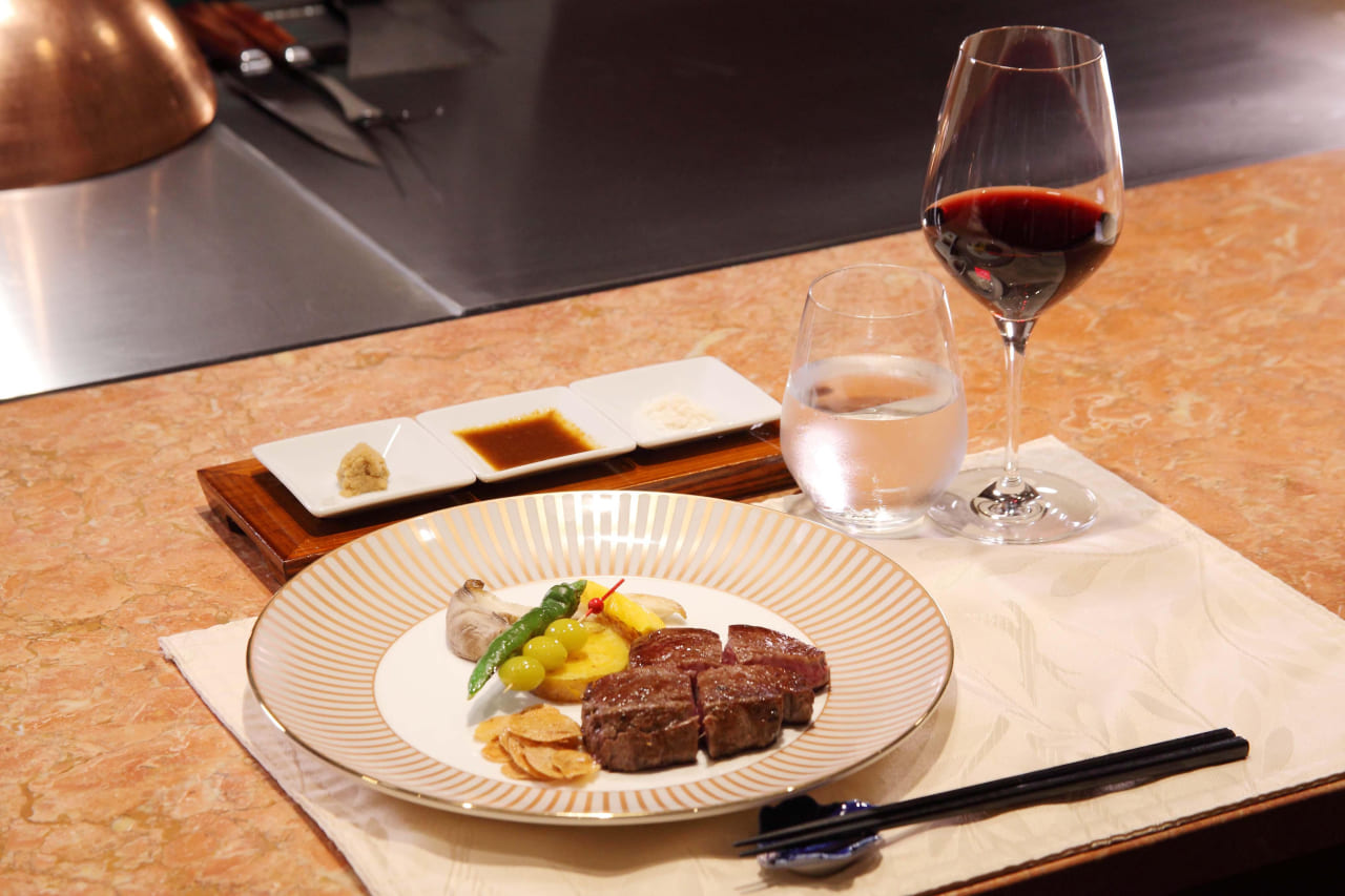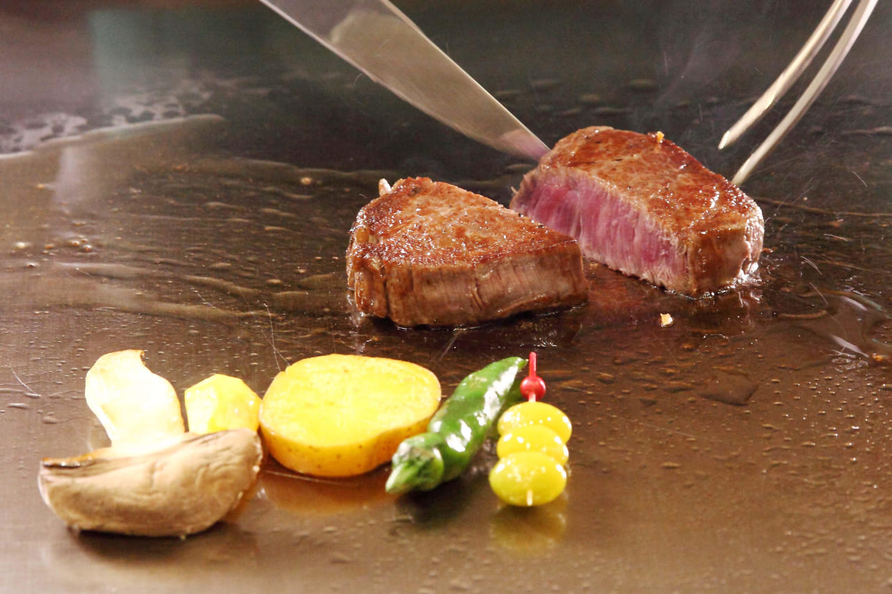 鹿児島・出水の北さつま のむら牛をはじめ、目の前で焼き上げる地元福岡の野菜や魚介類。